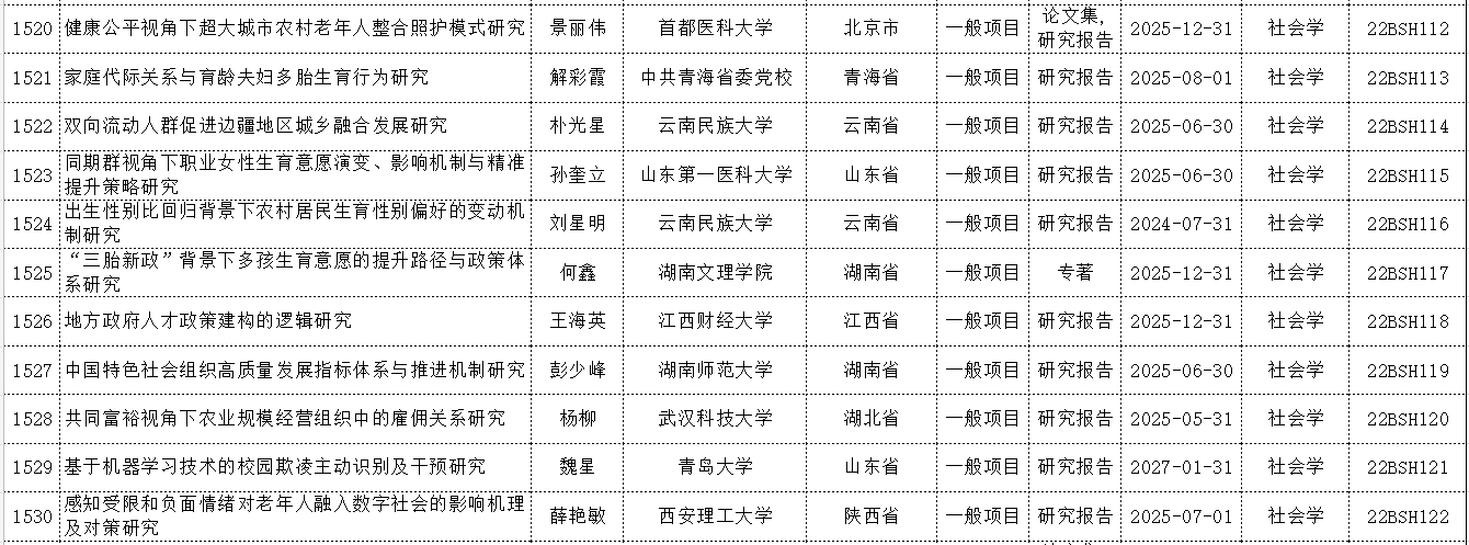 其中,社会学类年度项目共184个,包括18个重点项目和166个一般项目;社会学类青年项目共96个。